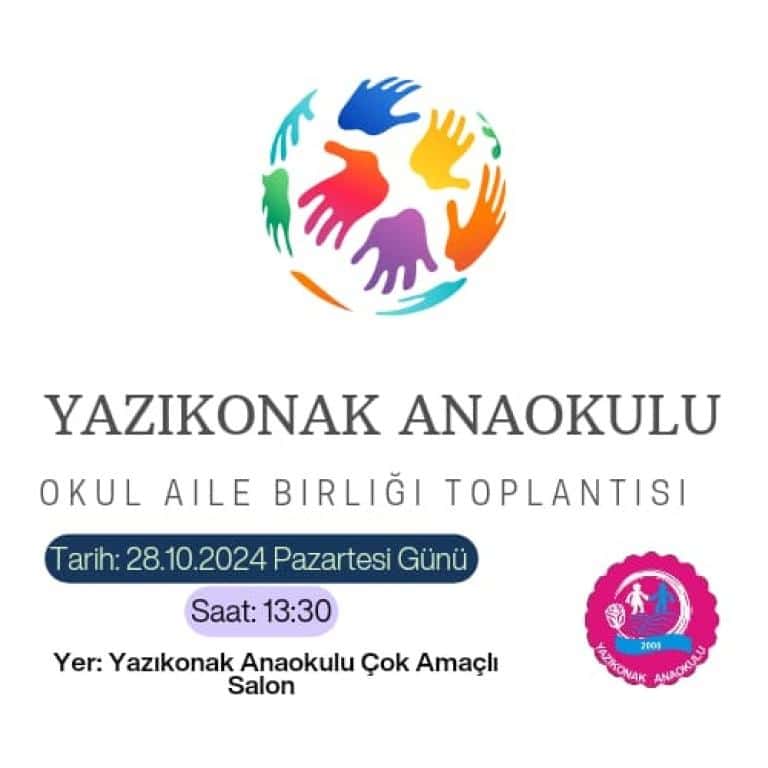 Yazıkonak Anaokulu 2024-2025 Eğitim Öğretim Yılı Okul Aile Birliği Genel Kurul Toplantısı 28.10.2024 Tarihinde Saat: 13.30 'da Okulumuz Çok Amaçlı Salon'unda Gerçekleştirilecektir. Tüm Velilerimizi Toplantıya Katılımınızı Bekler, Saygılar Sunarız...